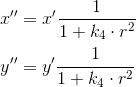 , x' and y' are undistorted, x'' and y'' are distorted normalized image coordinates.