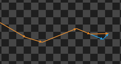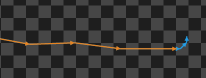The last orange segment is taken into account while determining angle between two paths. The omitted blue path ending has length inEndingLength. |