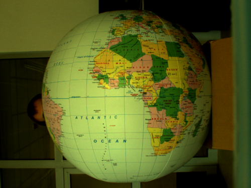 An image presenting a globe can be flattened in several ways, but the easiest one is to think of the globe as a sphere and consider one of the Image Spatial Transforms Maps filters to create a proper map and then display it as an image.