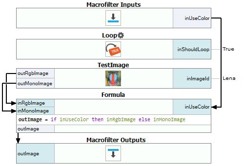 Connect the output of the formula to macrofilter outputs as outImage.