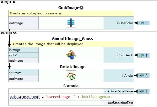 - VideoBox control available in the category of the same name in the HMI Controls window. Connect outImage to its input "inImage",