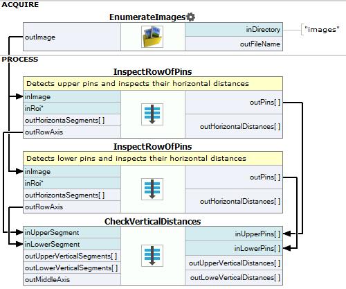 Since you created the inRoi input, you have to once again select the region in which the pins are. For the first filter select the region corresponding to the upper row and for the second filter - the bottom row.