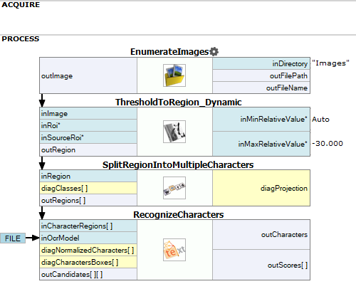 - Read text – recognizing the extracted characters with the ReadText filter.