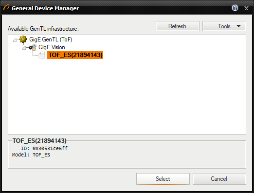 - Choose Tools » Manage GenICam Devices... from the Main Menu.