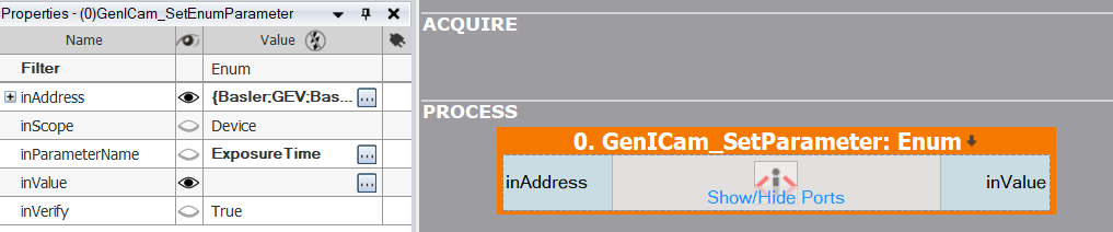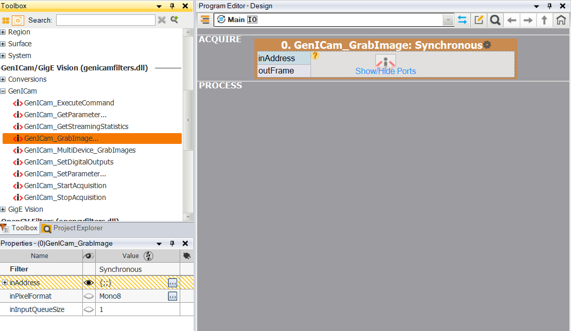 - Add a proper filter from the GenICam category to the program.