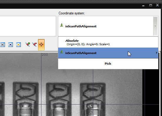 Create a scan path using a coordinate system from the inScanPathAlignment input. It is shown in the picture below.