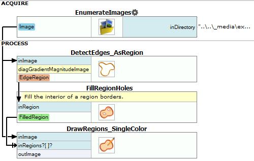Draw the found region in the input image using DrawRegions_SingleColor filter.
