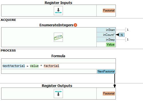 Connect the NextFactorial formula's output with the register's output: nextFactorial .