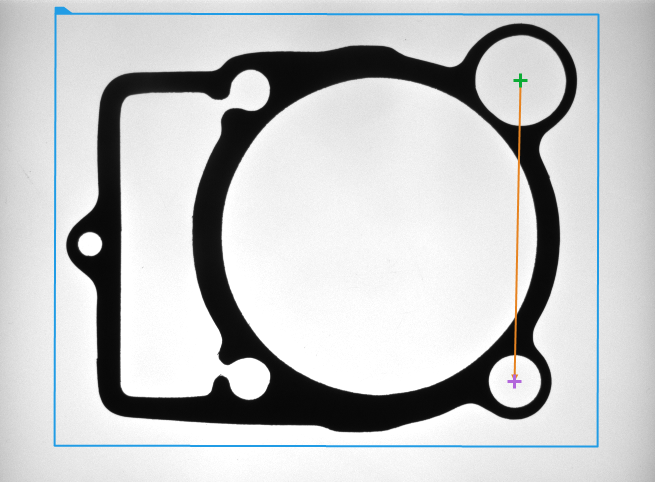 Start the program as in the "Edge-based Template Matching: Gasket" tutorial. Then use FitCircleToEdges filters to precisely detect the holes and PointToPointDistance to measure the distance between their centers.