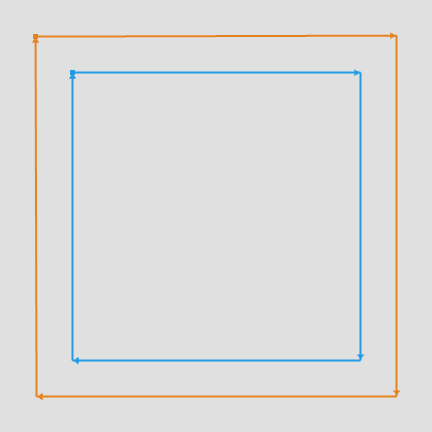 Example of inflation of initial path (blue). Result is in orange. Note that results for closed (on left) and open path (on right) are slightly different.