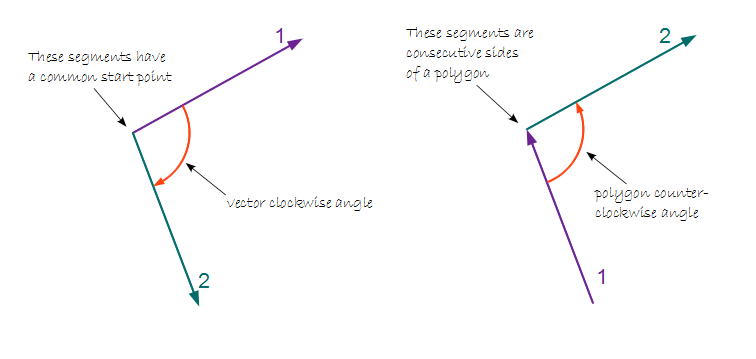 1. Segments as vectors - the angle is measured from the first to the second vector clockwise or counter-clockwise.