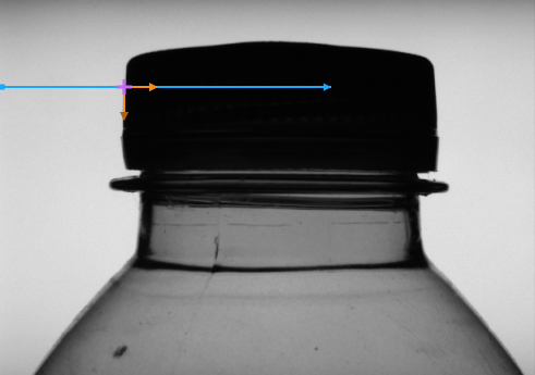 A local coordinate system created from a point. Here, the point is located with a 1D Edge Detection filter.