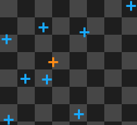 PointsMassCenter performed on a set of 8 input points. The orange point is the result.