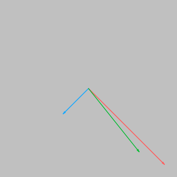 LerpVectors performed on red inVector0 = (50, 50) and blue inVector1 = (-25, 25) with inLambda = -1,0. Green is the resulting outVector.