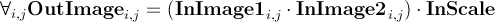 The operation computes the product of two images. Each outImage pixel is equal to the product of the corresponding pixels of the input images.