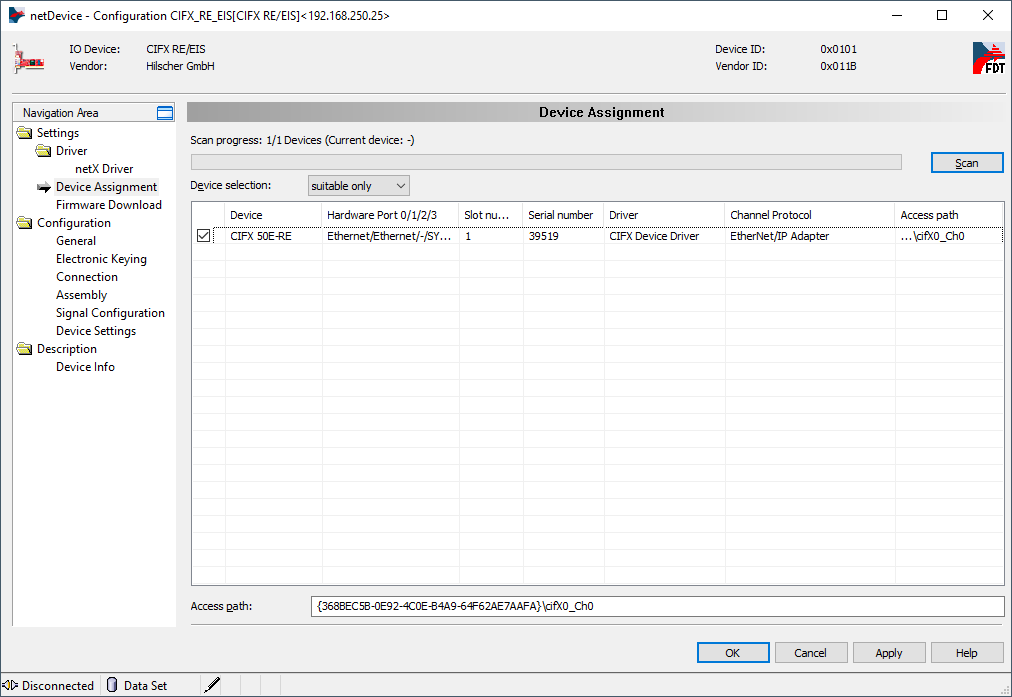 3. Check in your device in Device Assignment. This step was described in Configuration using SYCON.net section of this tutorial.
