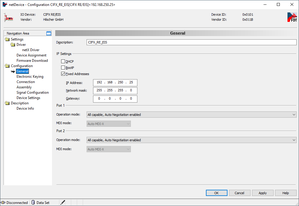 1. Set static IP to Hilscher card. Go to the section Configuration using SYCON.net of this tutorial.