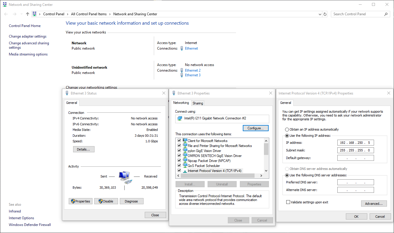 It might be necessary to change the IP of the network card from dynamic to static. In this tutorial the following settings are used.