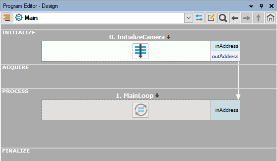 For example, if InitializeCamera was a task and not a step macrofilter the acquisition would stop when exiting it and it would have to be restarted in MainLoop.