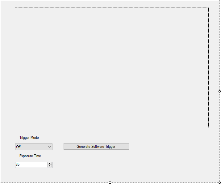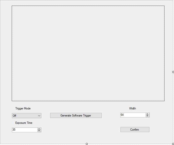 - NumericUpDown - to control width's value; set its Minimum and Maximum to the respective limits of the Width parameter in the camera (for the camera used while writing this note the values were 35 and 999985); set Increment to the respective value as well.
