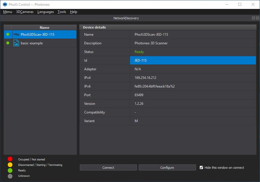 5. To use PhoXi 3D Scanner its Status should be "Ready"