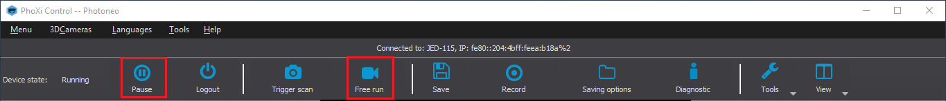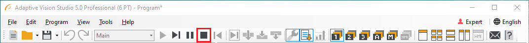 • You are not be able to change parameters in PhoXi Control application, while a program in Aurora Vision Studio is running and acquiring data from a scanner. You can stop a program by clicking Stop button or using Shift + F5 key combination.