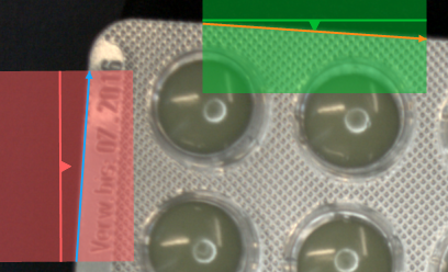 As variations of the object positions are limited, it can be located accurately with a very standard and fast Shape Fitting approach. With two FitSegmentToEdges filters it is possible to locate the top and the left edges. The found rectangle can be used as a reference for further inspections.