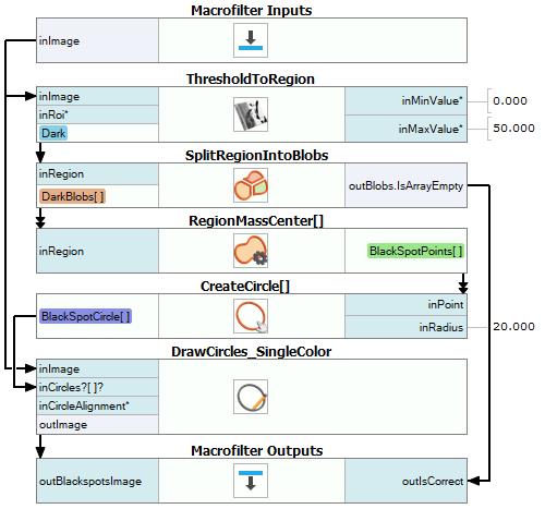 Create an output outBlackSpotsImage and connect it with output of the DrawCircles_SingleColor filter.