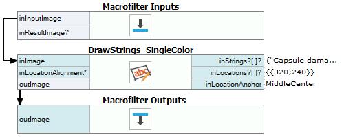 - Create the macrofilter output outImage and connect it the output of DrawStrings_SingleColor filter.