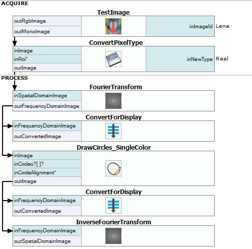 | InverseFourierTransform | Transforms an image in frequency domain back to spatial domain using inverse Fourier transformation. | |