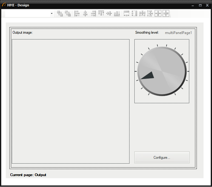 The next step would be creating the HMI. To do so, please click on the HMI Designer button. You should create the HMI looking more or less like this: