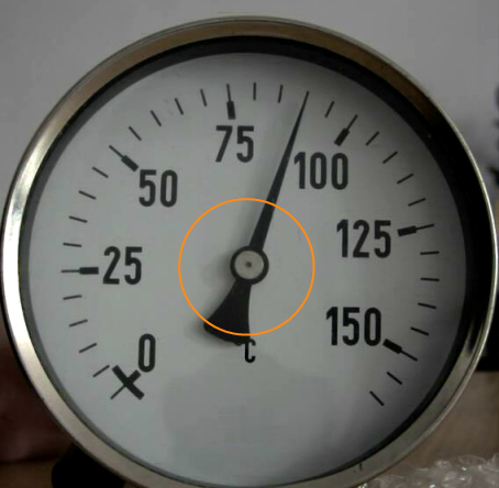 In this case hand of the meter can be easily found using 1D Edge Detection technique. To do that scanning should be performed on a circular scanning path.
