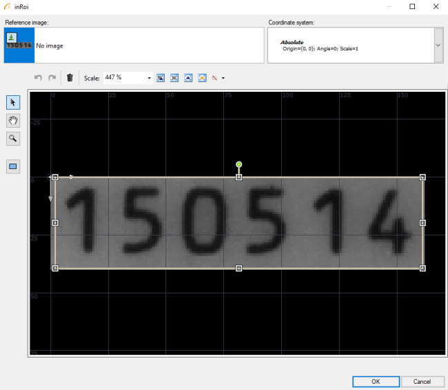 Click on the ExtractText filter and in the Properties window select inRoi to specify the area where characters should be extracted from: