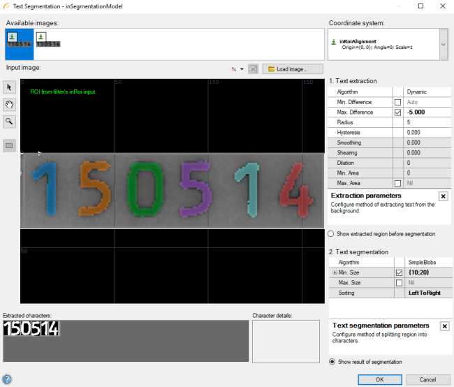 Now choose the inSegmentationModel input and create a proper segmentation model to correctly extract characters: