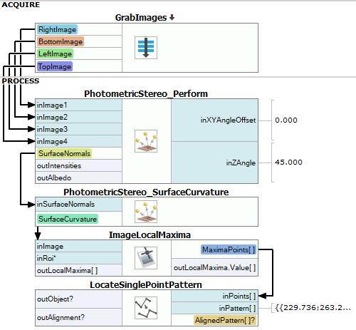 - Connect corresponding outputs from the macrofilter to the PhotometricStereo_Perform filter.