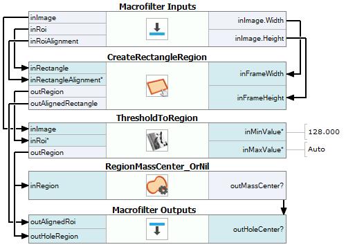 Add another DetectHole macrofilter and set its inputs inImage, inRoiAlignment, inFrameWidth and inFrameHeight as in previous steps.