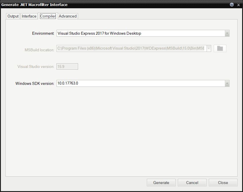 - Allows choosing the appropriate SDK version when generating Macrofilter .Net Interface. The list contains all detected SDK versions in the system.