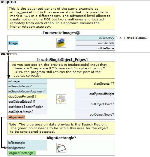 This exercise shows a way to find an object in an image using Edge-based Template Matching. To use EbTM please use LocateSingleObject_Edges1 filter.