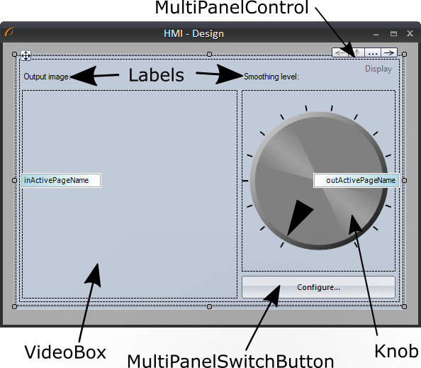 - One MultiPanelSwitchButton named "Configure". Double clicking the button or using the Properties window set TargetPage to "Configure".