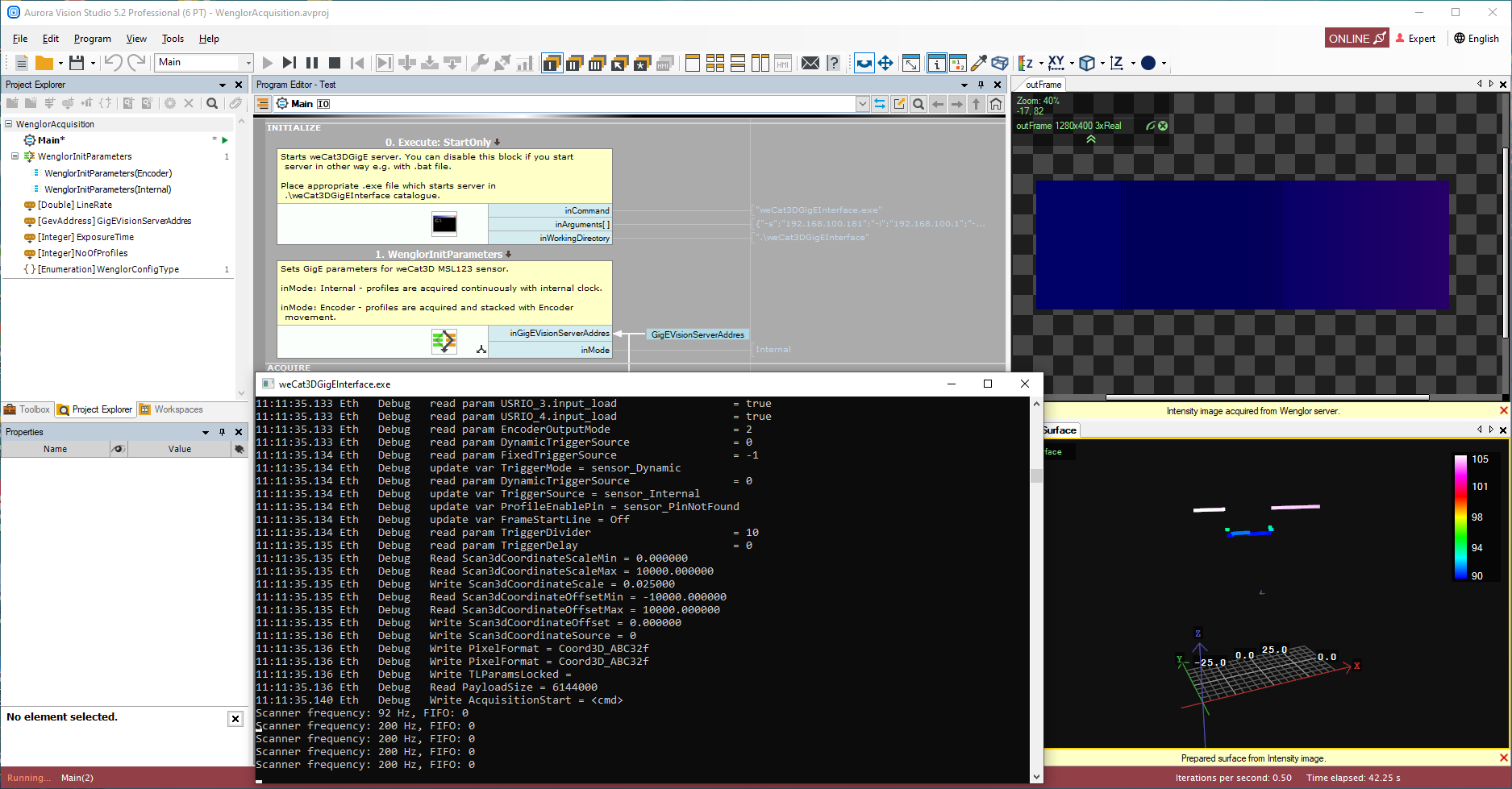 You are here: Start » Application Notes » Interfacing Wenglor profile sensor to Aurora Vision Studio