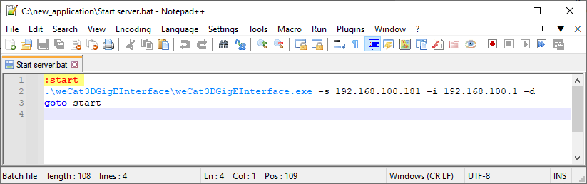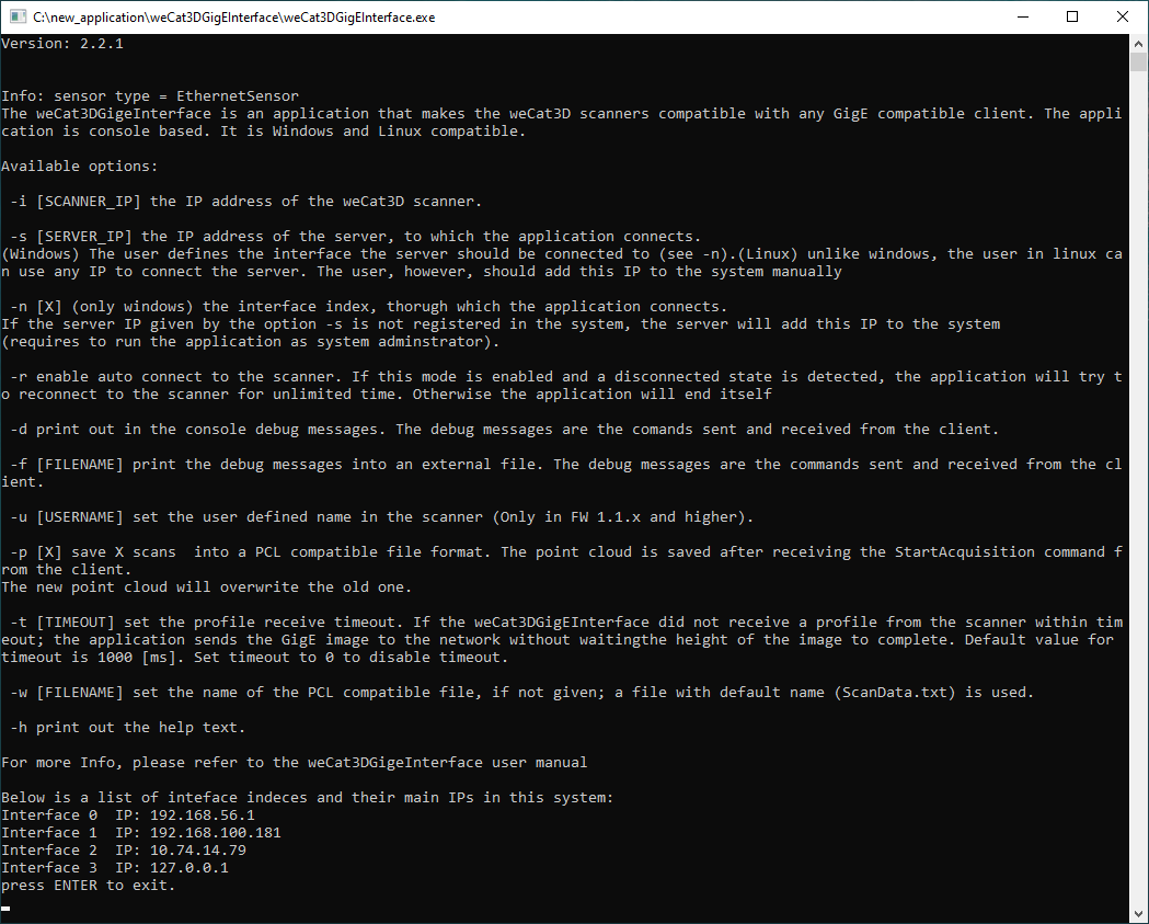 This console application should be run with appropriate arguments described in Wenglor server documentation. You can create file with bat extension with the following syntax: