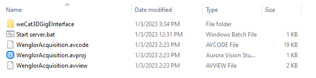 If you download Wenglor server archive, there should be a folder named "weCat3DGigEInterface". Copy it to the folder with Aurora Vision Studio project: