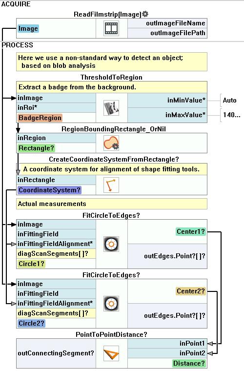 FitCircleToEdges | Precise detection of a circular object or hole, whose rough location is known beforehand. |