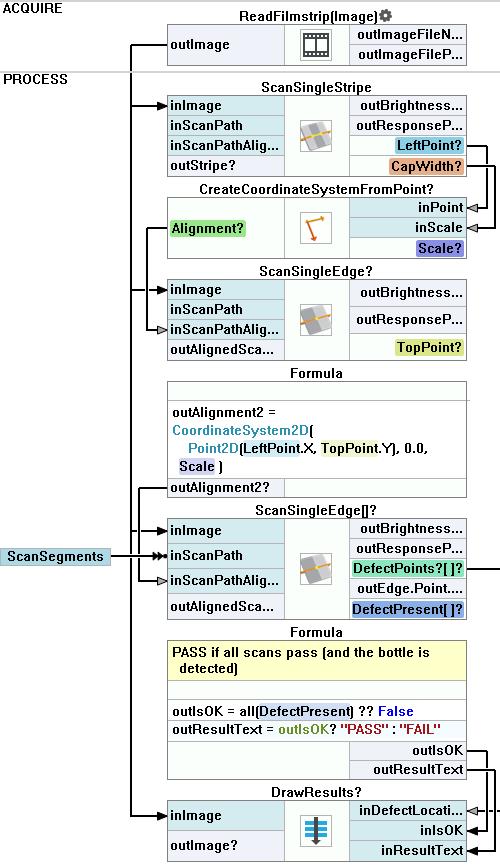 Add another Formula filter. Create the output outIsOK. This output will be shown in the images. The bottle will pass only if there are no gaps detected. :