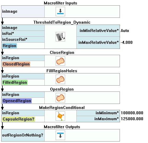 Create the Step macrofilter FindCapsuleShape and create inputs of types Image and Region. This macrofilter will be tasked with finding the contour of the capsule.