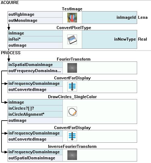 InverseFourierTransform | Transforms an image in frequency domain back to spatial domain using inverse Fourier transformation. |