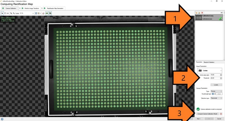 - Use Compute Calibration Model to calculate Camera calibration model and activate the next step.