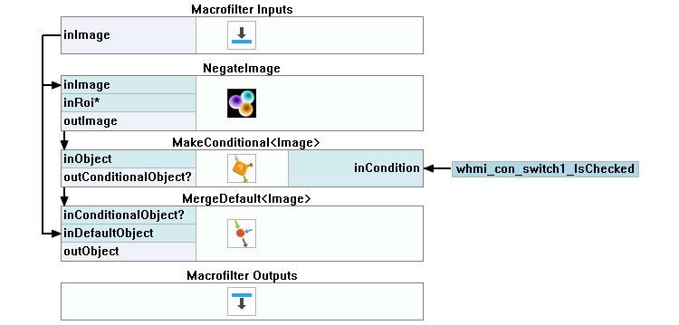 - In DisplayNegatedImage macrofilter connect MakeConditional::Image filter input inCondition to switch1 control outIsChecked output;