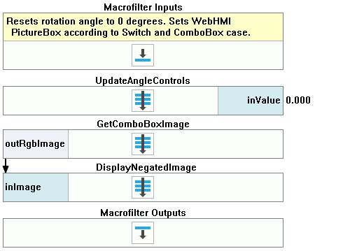 - In GetComboBoxImage macrofilter connect VariantImageSelection filter input inImageId to comboBox1 control outSelectedIdentifier output;
