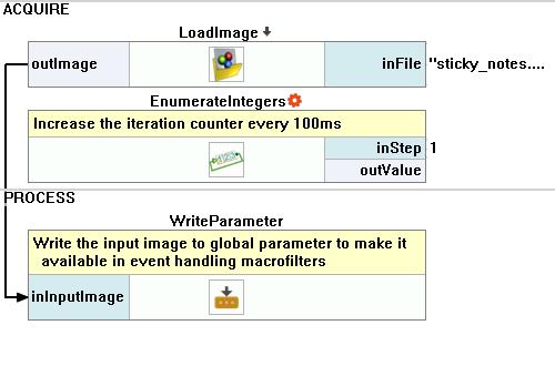 To update the global parameter every time the image is acquired, add WriteParameter filter to the Main loop and click "Add input" on it. Next, select the InputImage from the list.
